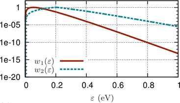The advantage of the SHE method is that the equilibrium distribution is described exactly by a zeroth-order expansion. This is in contrast to macroscopic transport models derived from moments of the BTE, where higher-order moments do not vanish. Therefore, it is reasonable to expect that for the resolution of small deviations from the equilibrium distribution, only a low expansion order is required for the SHE method in order to obtain good accuracy.