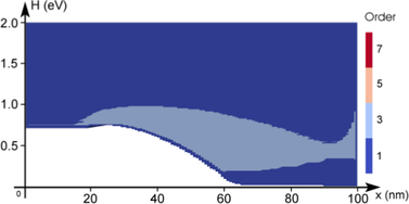Similar to unstructured grids, which allow for a high resolution in critical regions and a lower resolution in less important regions, a higher expansion order can be chosen at locations and energies with high influence on a target quantity such as current, carrier density, or average carrier velocity. Consequently, instead of a fixed-order expansion as in (2.41), variable-order expansions of the form