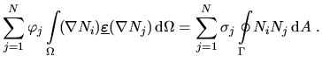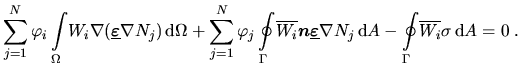 ![$\displaystyle \int_{\Omega}\!\left[W_i\nabla(\makebox{\boldmath$\underline m$}\nabla\tilde u)+W_i f\right]\,\textrm{d}\Omega =0, \qquad i=1, 2, 3, \ldots N\;.$](img224.png) |