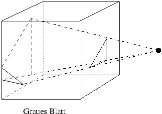 Im Fall, dass ein Geometrie-Punkt sehr nahe an einer Teilungsebene des Octrees liegt, und zwei Linien oder Flächen, die in einem sehr spitzen Winkel zueinander stehen, diese Ebene durchstoßen, ist der Abstand der Durchtrittspunkte(-linien) sehr klein. Er kann sogar kleiner als die Auflösung der im Rechner darstellbaren Zahlen werden, was zur Folge hat, dass dieser Fall nicht im Octree darstellbar ist, da nicht mehr weiter unterteilt werden könnte. Um dies zu verhindern wird ein neuer Blatt-Typ eingeführt (Graues Blatt). Sein Aufbau (siehe Abb. 5.9) ist ähnlich dem Punkt-Blatt mit der Ausnahme, dass sich der Punkt außerhalb des Blattes befinden darf, alle Flächen und Linien innerhalb des Blattes müssen jedoch diesen Punkt enthalten.