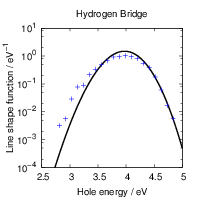 The maximum of the hole capture line shape of the closed hydrogen bridge on the other hand is too