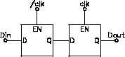 In addition to combinatorial logic some sort of storage is required for a digital circuit to keep its internal state. Static data storage is accomplished with bi-stable circuits. A.2 Figures A.11 and A.12 show two basic digital static storage elements, the latch and the register or so-called D-flip-flop (the inverters to generate the complement of the clk signals are not shown). The latch is transparent for the data D during the clock-high period, whereas the register actually samples the data at the rising edge of the clk signal. Another example of a static storage element is the RS (reset-set) flip-flop shown in Fig. 4.11. Both latches and registers are used to implement synchronous digital systems (cf. Section A.3).