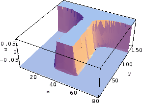 The initial level set function for a rectangular trench is shown in Figure 5.3. As it can be seen in this figure the signed distance function is a linear function with a value of zero at the boundary.