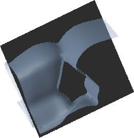 Since measurements can only be made from cross sectional SEM images in two dimensions, for three-dimensional deposition simulations we have used the same parameters which were extracted with the optimization and calibration tool SIESTA [35] for two-dimensional simulations. The first set of parameters comes from the simulation results of the deposition of silicon nitride into interconnect lines as shown in [12] and the second set comes from the simulation results of the deposition of silicon dioxide from a TEOS process performed in [9]. These parameters led to very good agreement of simulation results with measurements in two dimensions.