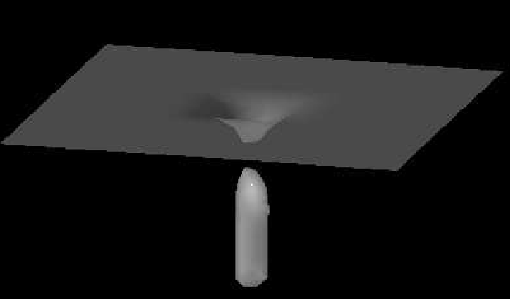 We begin with a deposition of the material into a rectangular trench shown in Figure 10.1. The transport of the particles is based on the radiosity model. Figure 10.2 shows the simulation result of this material deposition from a plane located above and parallel to the trench leading to the void formation, because of shading effects due to the visibility determination between surface elements and source plane, and between surface elements themselves. Since the angle of visibility of the source is smaller at the bottom of the trench compared to the top of the trench, more material is deposited at the top of the trench. This in turn leads to the effect that the visibility angle of the source plane at the bottom is decreased more and more as the material deposition continues, until the top left and right sides of the trench come together and form a void.