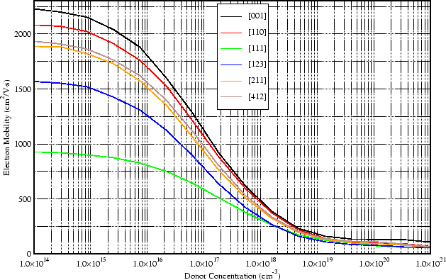 Fig. 5.21 shows the Monte Carlo simulation results for the majority electron mobility in relaxed