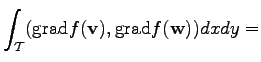 $\displaystyle \int_\mathcal{T} ( \mathrm{grad} f(\mathbf{v}), \mathrm{grad} f(\mathbf{w}) ) dx dy =$
