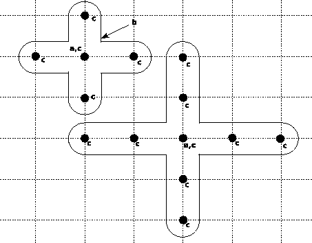 The first step of a finite difference simulation is the determination of the neighborhood. In a very simple two-dimensional case, the neighborhood of a vertex is defined by the four vertices which are covered by the edges incident with the original vertex. It is also assumed that the respective vertex has to fulfill some geometric criterion to be considered as neighboring. In order to obtain all neighboring vertices of a given basis vertex, the traversal function