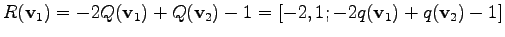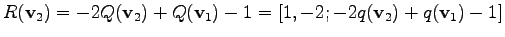 In the equation system two unknown variables are defined, namely temperature values for the two inner vertices. The discretization formula resulting from finite differences for the vertices yields