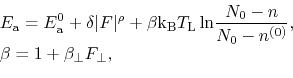 where δHC and ρHC are fitting parameters. An important peculiarity of the Penzin approach is that the activation energy of bond dissociation depends on the hydrogen density and the transversal component of the electric field. The Si/SiO2 interface (and its vicinity) is considered as a capacitor. The released hydrogen is assumed to be charged as well as the remaining dangling bonds. As a results, an additional electric field related to these charges is introduced into the system. This field prevents subsequent hydrogen ions from leaving the system and thus the potential barrier separating bonded and transport states is increased: