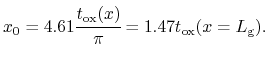 Here, x = Lg is the position of the drain end of the gate. Thus, one cane consider the local oxide capacitance as constant (i.e. use the parallel-plate capacitor approximation) already at a distance of 1.47 of the oxide thickness at the drain end of the gate contact. As a result, it is possible to operate with a simple expression (4.14) if the region of interest is outside of the mentioned area.