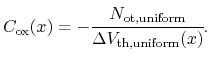 The local oxide capacitance can be defined as the ratio between the surface charge density σsurface and the interface potential U0, written as