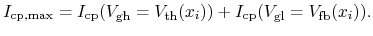 This extraction algorithm is based on the iterative correction scheme employing the equation system (4.13). The pre-stress CP edge is corrected for the additional charges associated with both Not(x) and Nit(x) generated due to the stress. For each position xi, the maximum possible range where the post-stress local threshold voltage can lie is found. By comparing the varying pulse-high and varying pulse-low measured CP currents under consideration for a chosen Vth(xi) valuefrom this range, Nit is separated from Not. Namely, for an assumed Vth(xi) using (4.11) Nit(xi) is calculated. Further, for a known value of the interface state density at xi, the local flatband voltage Vfb(xi) is found employing (4.12). The obtained results are Icp(Vgh = Vth(xi)) and Icp(Vgl = Vfb(xi)). Since the maximum value of the CP current Icp,max is the same for both varying high/low-level measurements (the effective channel length is the same), the following condition must be satisfied (see, Figure 4.15)