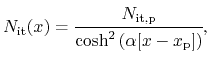 Here, it is assumed that Nit(x) follows the lateral electric field distribution along the channel. The main idea is that the damage profile can be modeled best as Gaussian. However, a Gaussian distribution is inconvenient for analytical modeling because the integral results in the error-function. Therefore, the authors suggest to model the Nit profile by an analytically integrable function with a similar shape