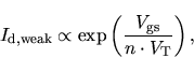 In the weak-inversion (or subthreshold) regime, the drain current depends