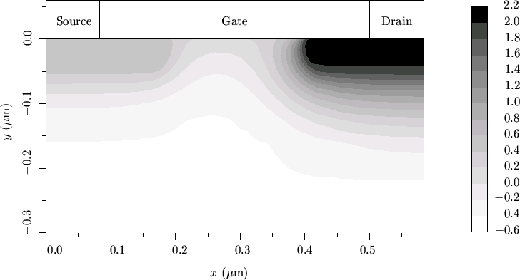 Fig. 2.2 shows the two-dimensional potential distribution of the two