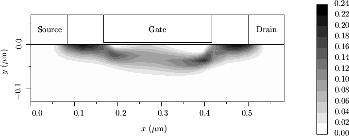 As a result of the increased distance of the current path to the surface, the gate contact loses more and more control over the channel which can be accounted for by a virtual increase of the gate oxide thickness and, therefore, a smaller gate capacitance according to (2.5).