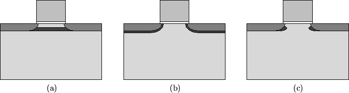 Other methods to prevent punchthrough which have almost no effect on the subthreshold swing are depicted in Fig. 2.5. They make use of spatially restricted dopand implantations like (a) delta doping, (b) halo, or (c) pocket implants heading for a shield against punchthrough without affecting the subthreshold swing [74].