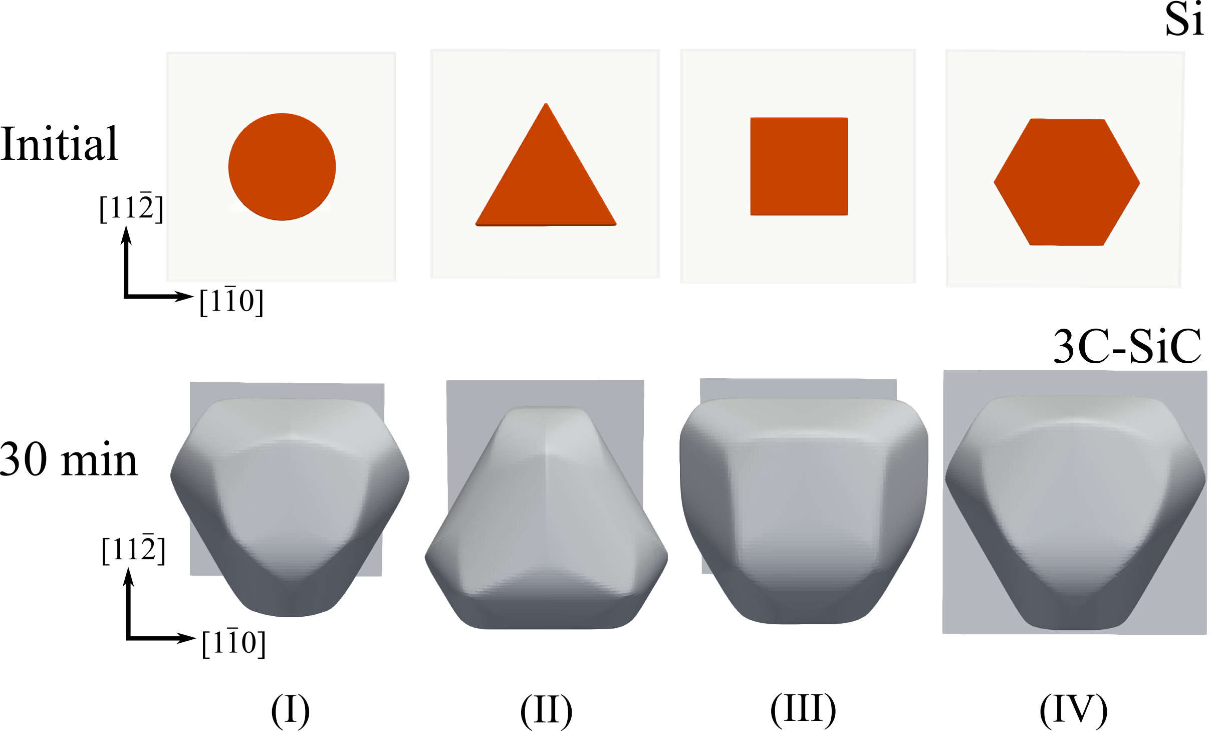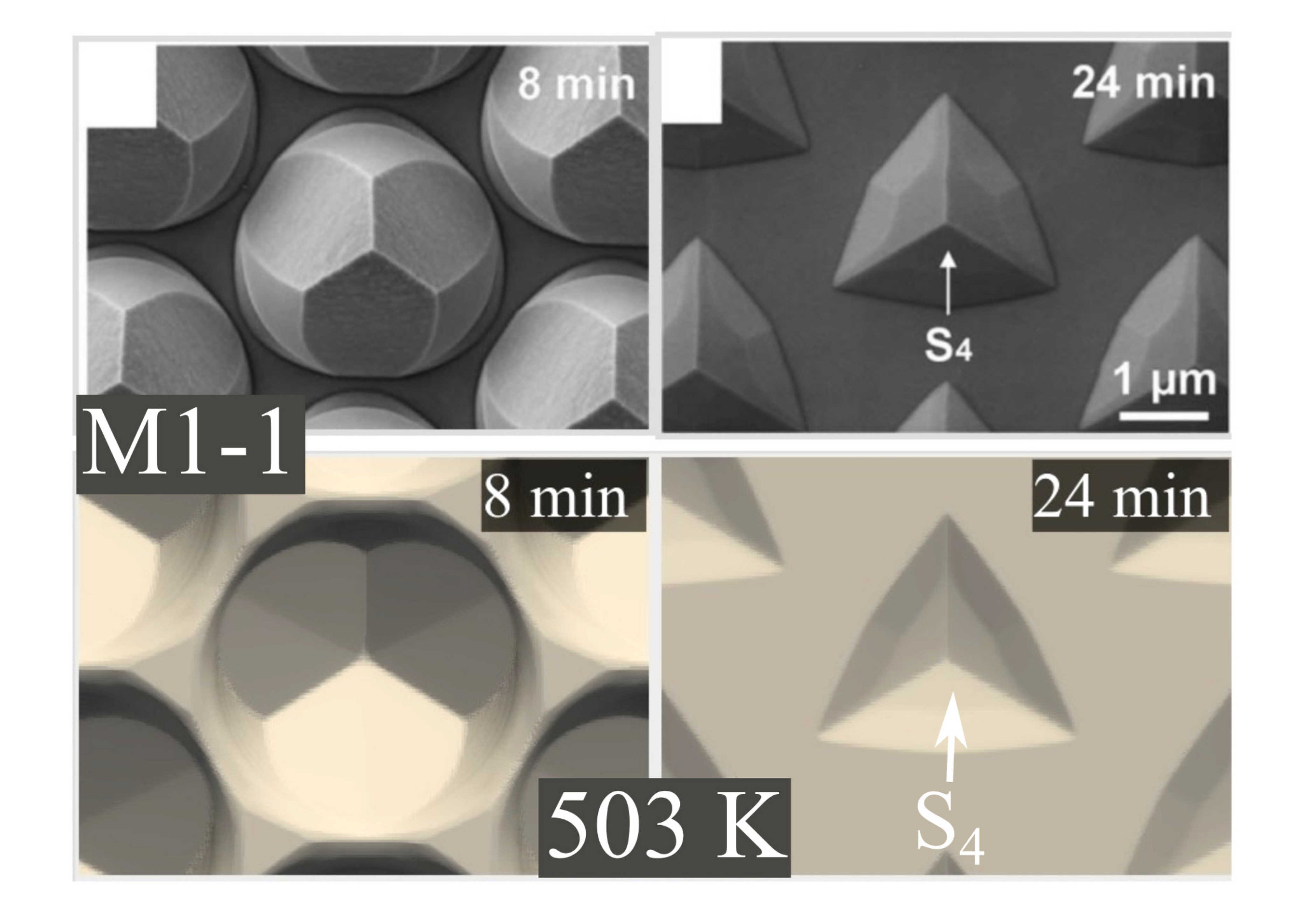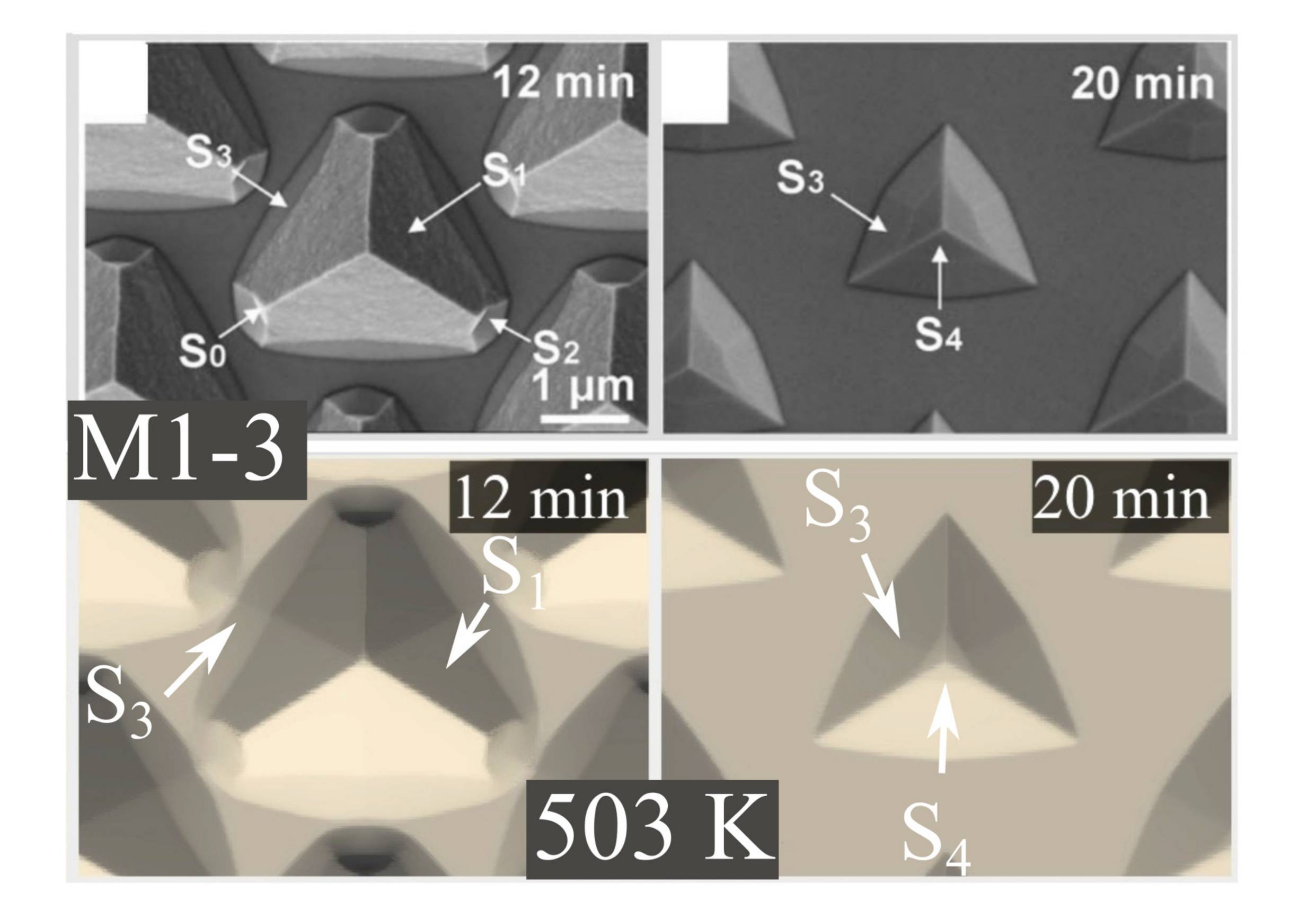 First, the etching experiment with M3-1 at is considered. In the experiments, Shen et al. have characterized three crystal facets: