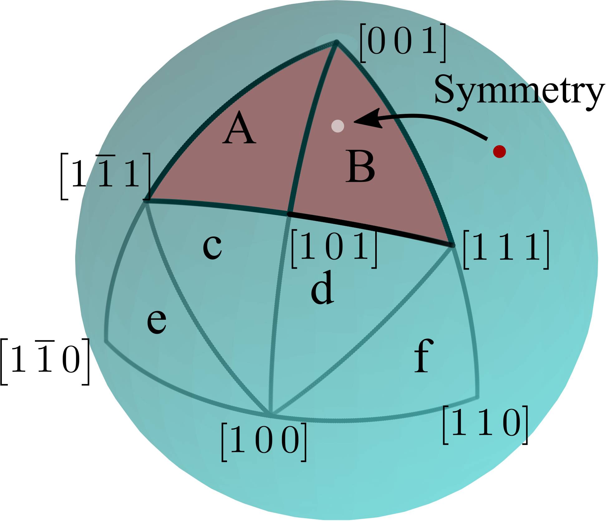 ). A crystallographic point group characterizes the set of symmetry operations that leave the crystal structure unchanged [41]. Octahedral symmetry involves 48 symmetry operations, which provides the possibility to only consider a subset of the unit sphere