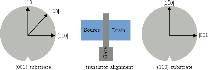 An alternative approach yielding mobility improvement in Si exploits the dependence of the carrier mobility in Si inversion layers on the crystal orientation and on the current flow direction. For example, for holes the mobility is 2.5 times higher for (110) surface orientation than for standard (001) orientation depending on the applied effective vertical field. In the hybrid orientation technology (HOT), which is based on wafer bonding techniques and selective epitaxy, the larger carrier mobility of holes for (110) oriented substrate is exploited to enhance the performance of p-channel MOSFETs [Ouyang05,Yang06,Sheraw05]. HOT seems promising because processes are directly compatible with existing CMOS technology and strain engineering.