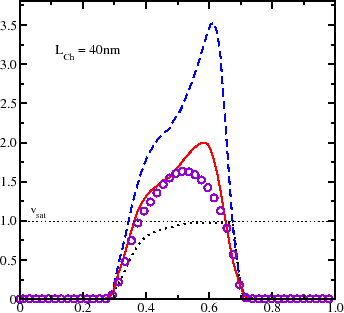 less the same velocity profile, while for decreasing channel lengths, the SVO in the