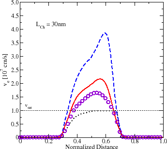 the channel of a MOSFET. Since the velocity overshoot at the end of the