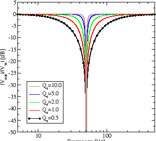 The AC features are activated the very same way than for the single-mode. However, circuits have to be extended by complex-valued sources. The sources are basically responsible for the setup of the mixed-mode AC mode. The mixed-mode of MINIMOS-NT can be used as pure circuit simulator with compact models only. In order to demonstrate the complex-valued sources, a parallel resonant circuit and a band rejection filter are simulated. For the simulation setup, see Appendix A.8. The output curves of both examples are shown in Figure 3.14.