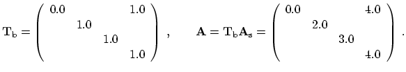 In contrast, the formerly used module calculates all transformations during a symbolic assembly phase in advance and is therefore able to assembly only one system matrix during the actual assembly phase (cf. Newton adjustment). So the matrix additions and multiplications are performed immediately while an entry is added. As analyzed, these transformations do not perform a multiplication in the strict mathematical form, but are already adapted for the requirements described above. This behavior should be demonstrated on a simple mathematical example.