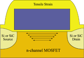 is used [78,87,88], while tensile stress in n-channel MOSFETs can be achieved via