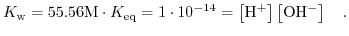 ![$\displaystyle K_{\mathrm{w}}=55.56\mathrm{M}\cdot K_{\mathrm{eq}}= 1\cdot 10^{-14}=\left[\mathrm{H}^{+}\right]\left[\mathrm{OH}^{-}\right]\quad.$](img711.png) |