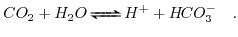 reacts with water producing carbon acid and hydroxyl ions. The process is governed by the following reaction: