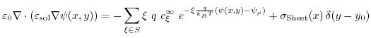 Looking at the region containing the charged macromolecules linked to the surface and not being dispensed in a gel, one recognizes that its height is typically in the deca nanometer regime. Thus, it is extremely thin compared to the rest of the device dimensions. Therefore, to save mesh points, one introduces the average charge density replacing this region with an equivalent sheet charge
