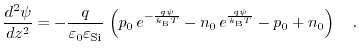 The relation between the charge density in the MOSFET channel and the potential drop (assuming an n-channel MOS transistor) can be obtained from the Poisson equation using the prerequisite of the validity of Boltzmann distributed electrons and holes. Interrestingly, this leads to an equation very similar to the Poisson-Boltzmann model of the electrolyte: