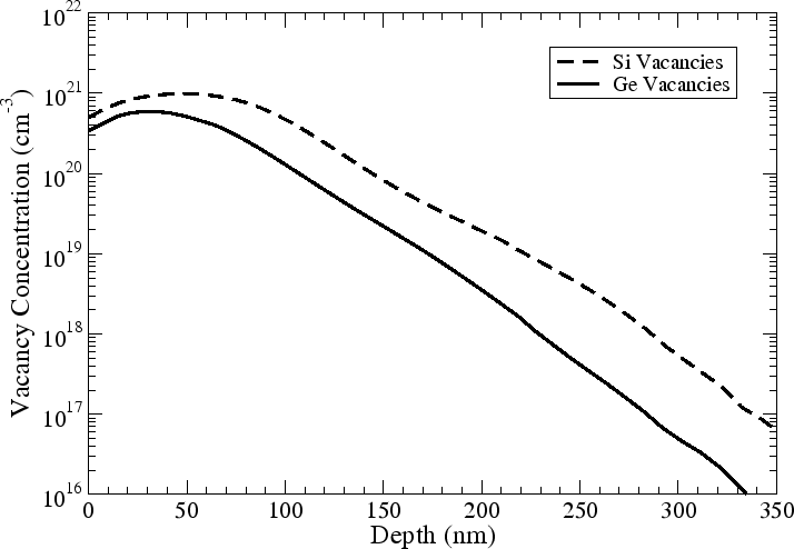 Fig. 4.15 compares the simulated vacancy concentration profiles in silicon