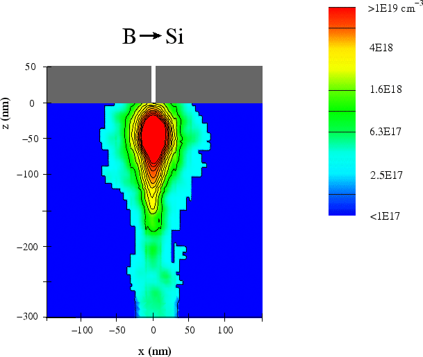 vertical penetration of boron ions. The used two-and-a-half dimensional input
