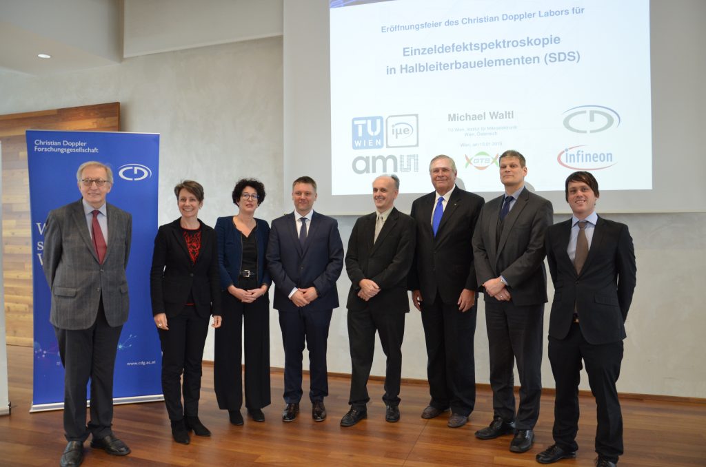 On January 15th TU Wien hosted the opening ceremony of the Christian Doppler Laboratory for Single-Defect Spectroscopy. With a panoramic view over historic Vienna at TUtheSky, the director of the new research laboratory Michael Waltl warmly welcomed the representatives of the TU Wien rectorate, the president and members of the Christian Doppler Forschungsgesellschaft, managers and researchers of the industrial project partners, as well as colleagues and friends working at the TU Wien.